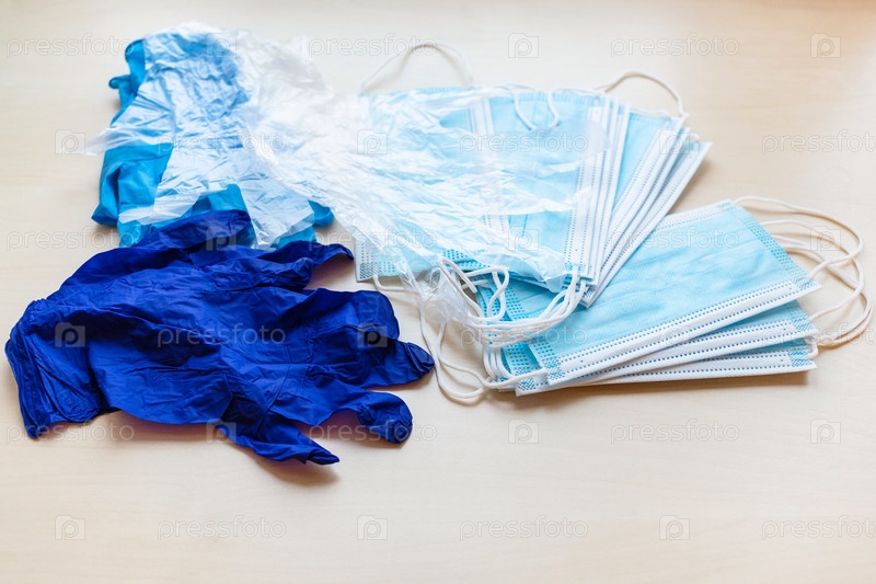 Синие одноразовые защитные маски и перчатки