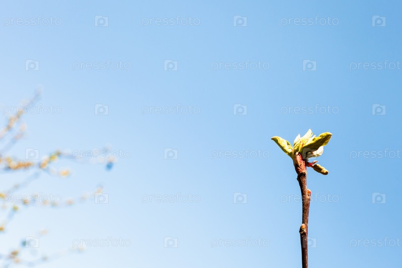 Ветка с бутоном и голубым небом на заднем плане