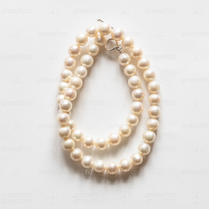 Сложенное белое жемчужное ожерелье на белом