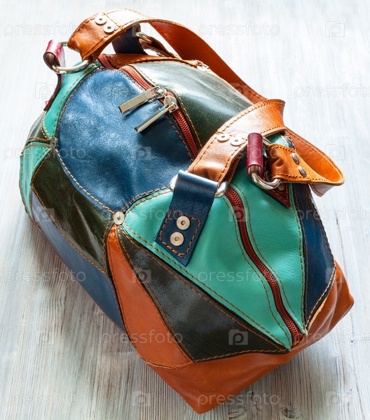 Дорожная сумка из лоскутной кожи ручной работы на сером