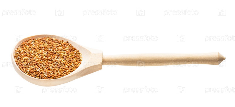 Семена сибирского проса чумиза в ложке изолированы