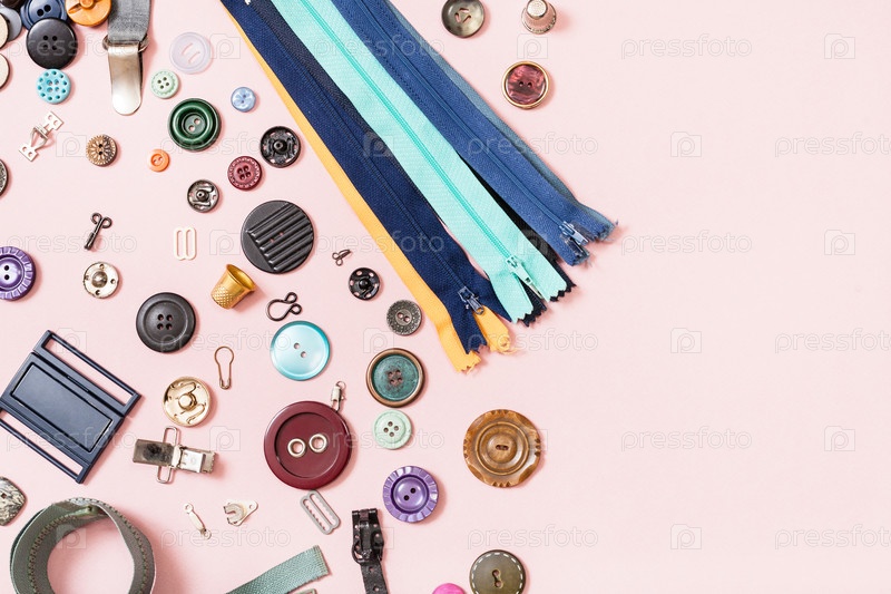 Набор швейных принадлежностей на розовом с копирайтом