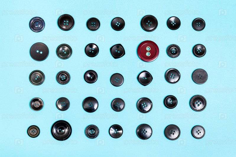 Красная кнопка между множеством черных кнопок на синем фоне