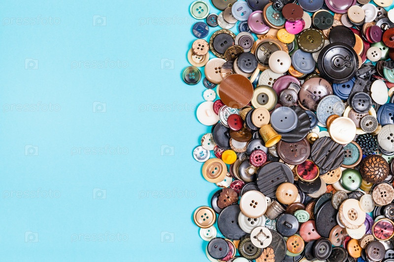 Куча различных кнопок на синем фоне с копирайтом
