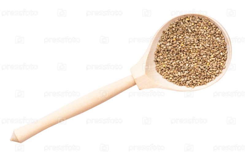 Вид сверху на семена проса скотного двора в деревянной ложке