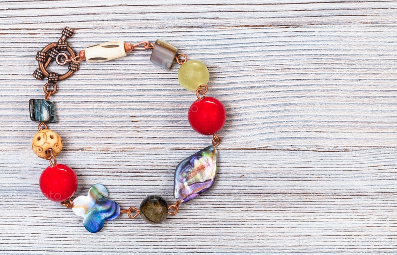 Браслет из перламутра, кости и бусин агата на сером
