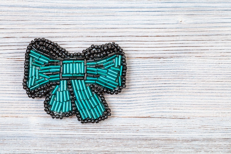 Брошь для галстука-бабочки из стекла зеленый стеклярус на сером