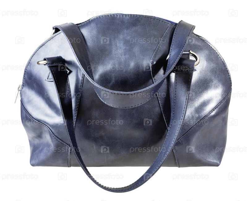 Вид сбоку темно-синей кожаной сумки изолирован