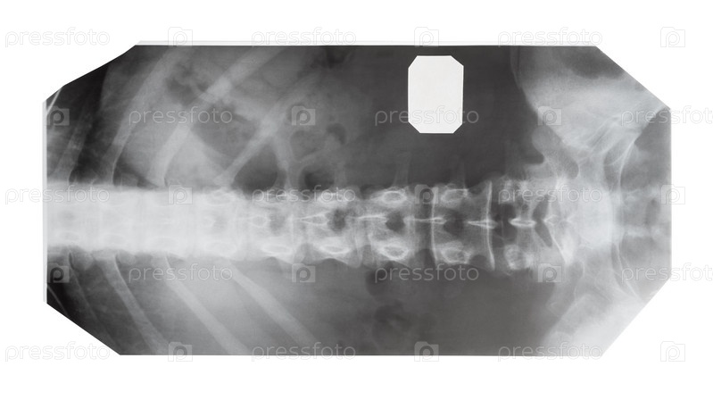 Пленка с рентгеновским изображением позвоночника человека спереди