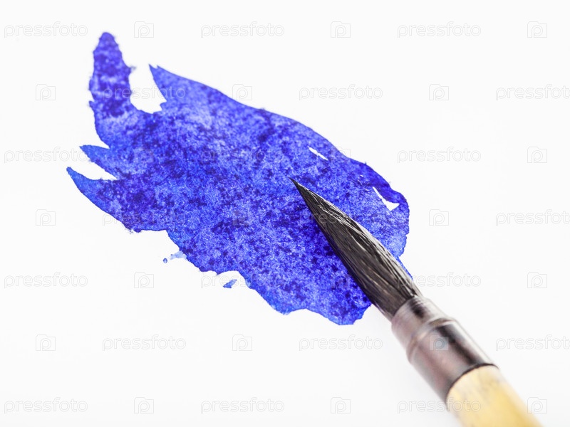 Синий кончик кисти в пятне крупным планом