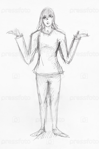 Эскиз озадаченного мальчика вскидывает руки
