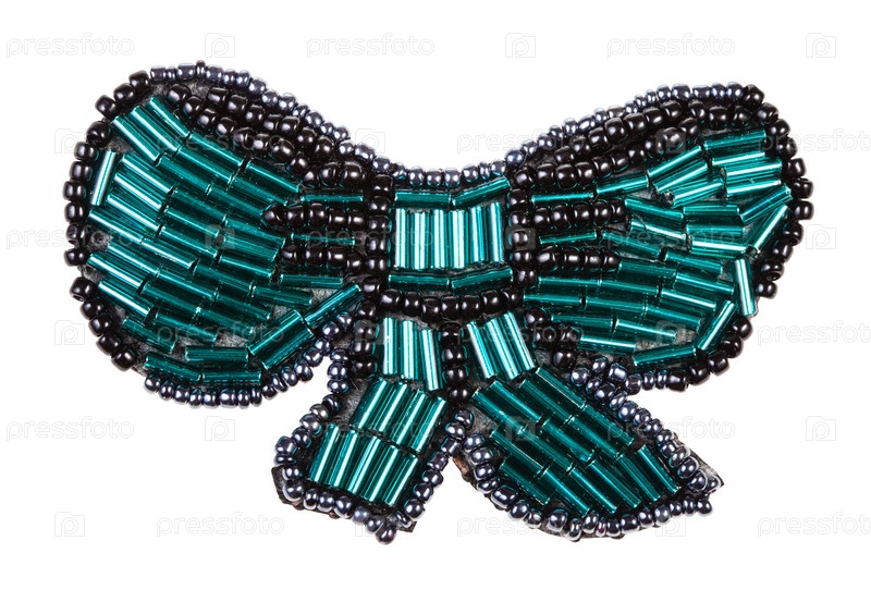 Брошь в виде галстука-бабочки из стеклянного зеленого стекляруса