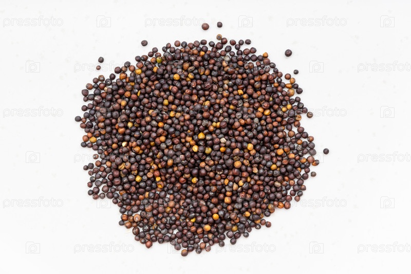 Куча цельнозернового рапса крупным планом на сером