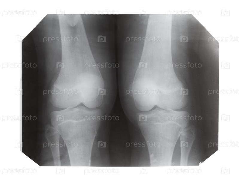 Пленка с рентгеновским изображением колен человека спереди
