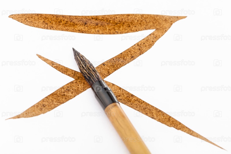 Кисть с коричневым наконечником по коричневым мазкам