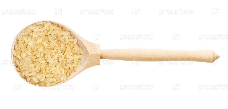 Вид сверху на ложку с пропаренным длиннозерным рисом