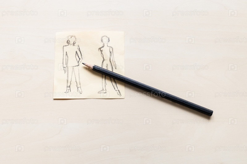 Эскиз модного силуэта и черного карандаша