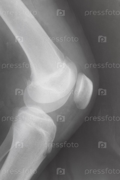 Коленный сустав человека с надколенником на рентгеновском снимке