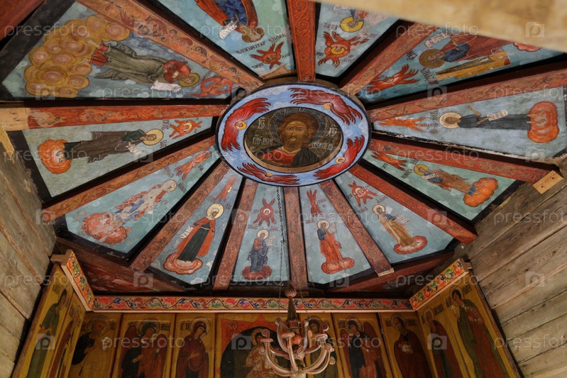 Потолок и часть иконостаса часовни Архангела Михаила. Остров Кижи. Карелия