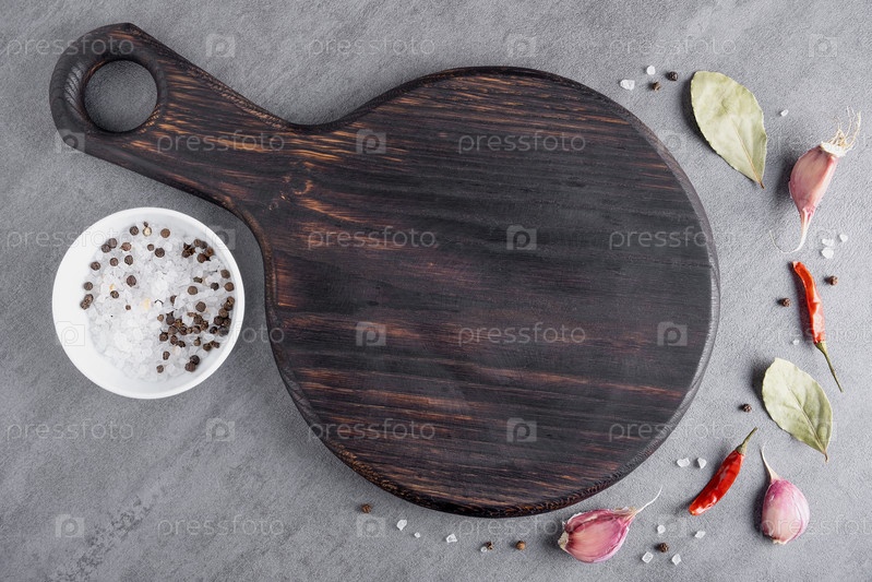 Разделочная доска или доска для стейков с солью и специями