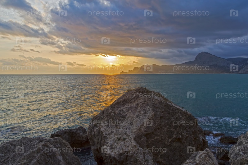 Закат солнца над Черным морем. Вид с мыса Алчак, Судак, Крым