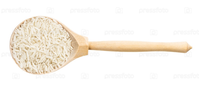 Вид сверху на ложку с полированным длиннозерным рисом