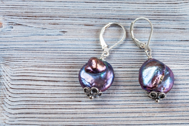 Серьги из переливающегося барочного жемчуга на сером