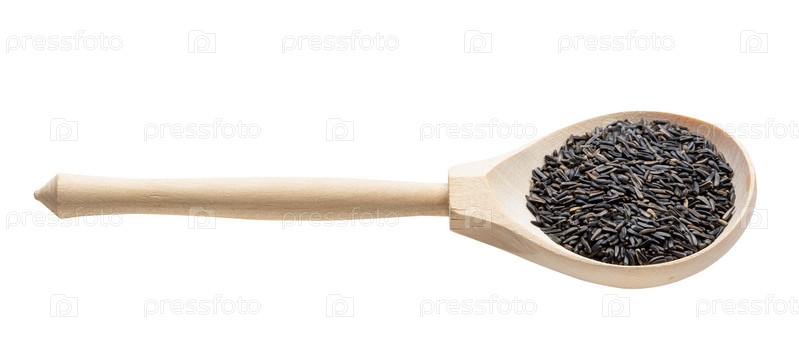 Цельнозерновые семена нигера в деревянной ложке изолированы