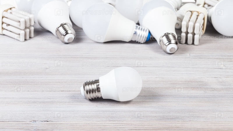 Одна белая светодиодная лампа и энергосберегающие лампы