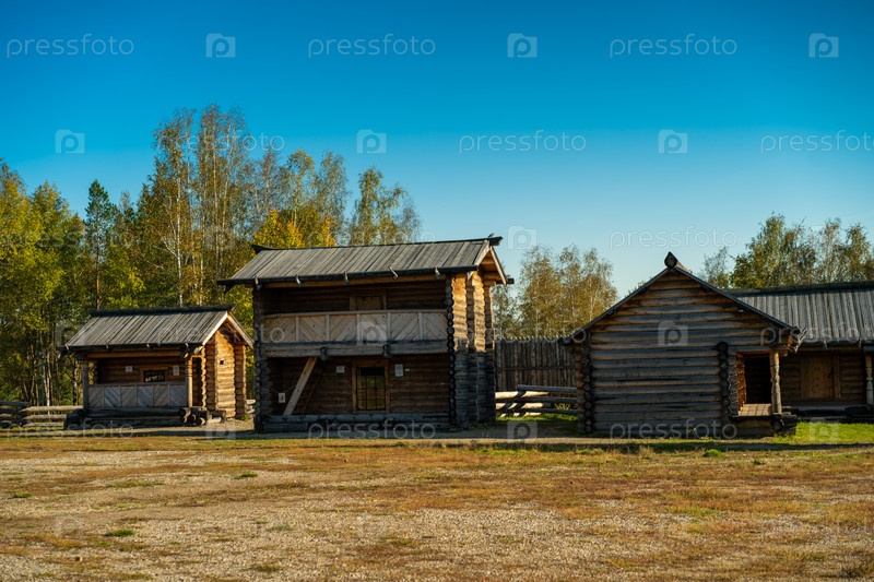 Природный ландшафт с деревянными постройками