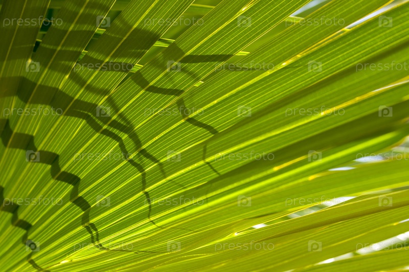 Тропический яркий пальмовый лист в солнечных лучах, цветочный экзотический узор фона