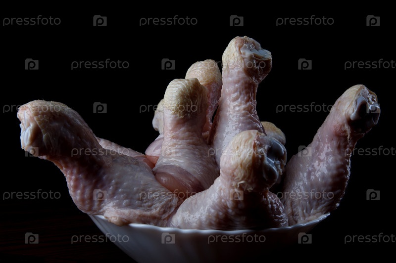 Сырые куриные ножки на темном фоне