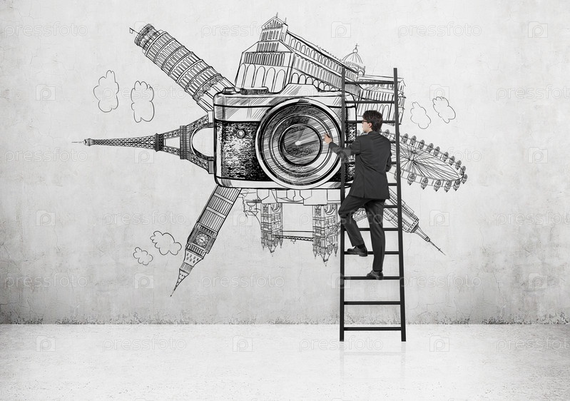 Мужчина рисует иллюстрации достопримечательностей
