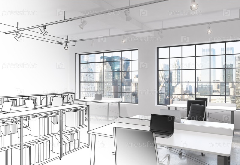 Рабочие места в современном офисе открытого пространства лофта