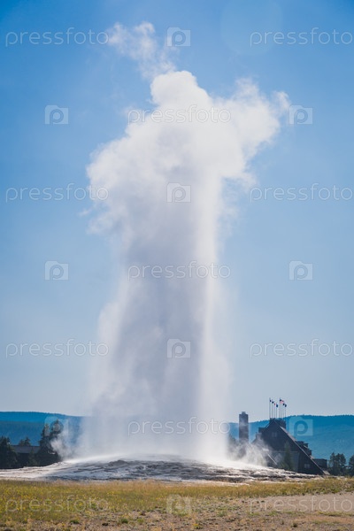 Старый верный гейзер извергается в Йеллоустонском национальном парке