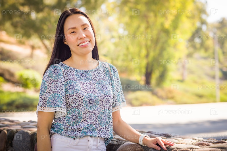 Внешний портрет счастливой китайской молодой взрослой женщины