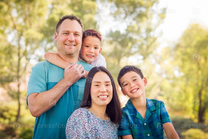 Уличный портрет двухрасовой китайской и европейской семьи