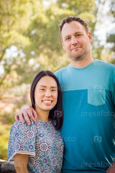 Уличный портрет двухрасовой китайской и европеоидной пары