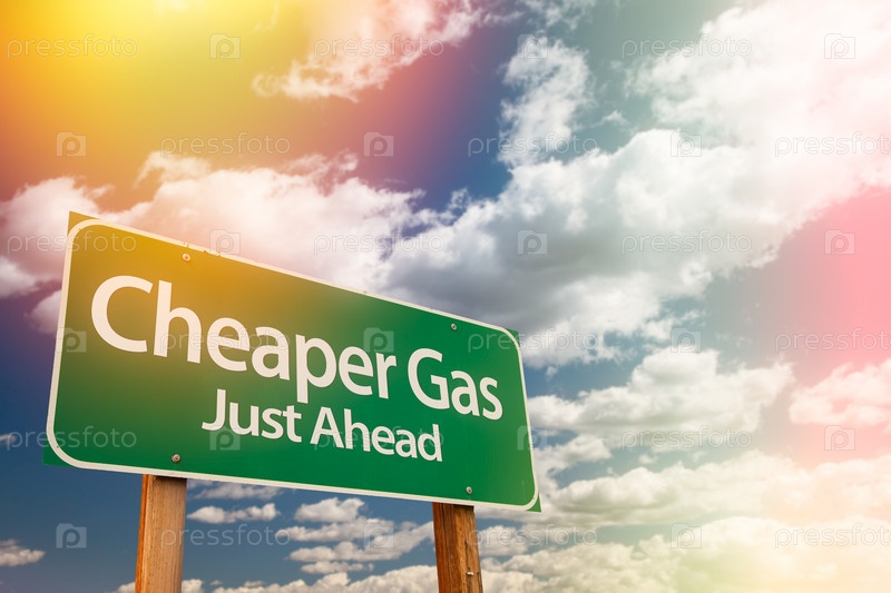 Дешевле газ зеленый дорожный знак против облачного неба