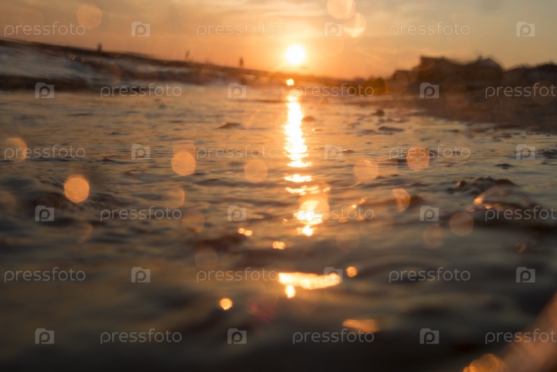 Красивый восход солнца над тропическим пляжем, размытое фото для фона