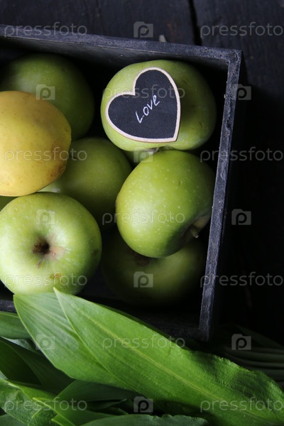 Здоровая пища, яблоки и зеленые листья