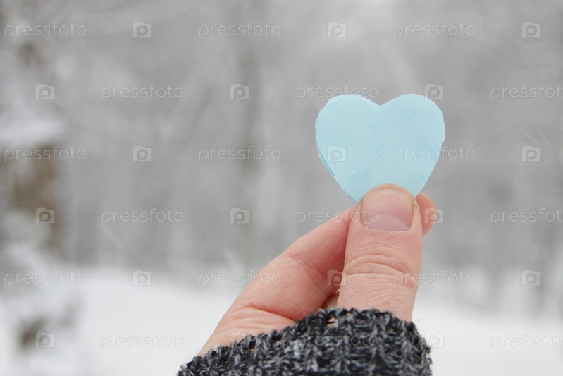 Творческий зимний фон с сердцем из синей бумаги