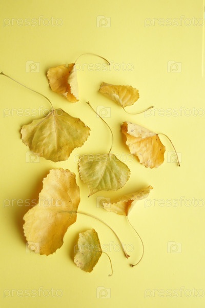 Осенний фон. Листья на желтом фоне