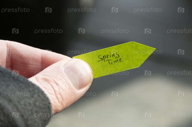 Концепция весеннего времени. Текст написан от руки на зеленой указке