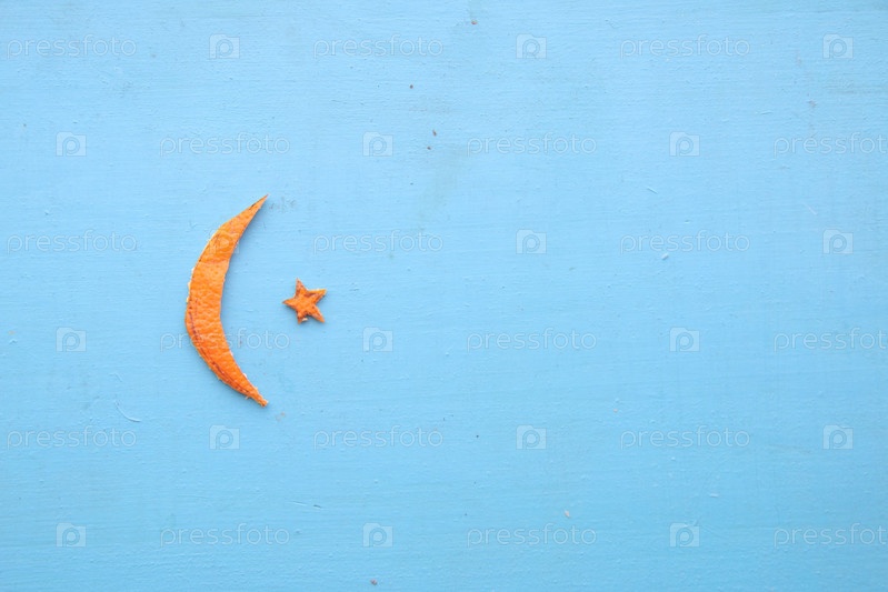 Полумесяц и звезда для Рамадана. Цедра мандарина на столе