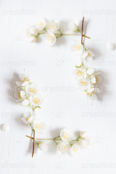 Рамка цветы на белом фоне деревянные. С копией пространства