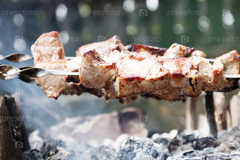 Шашлык из маринованной свинины на гриле с дымком