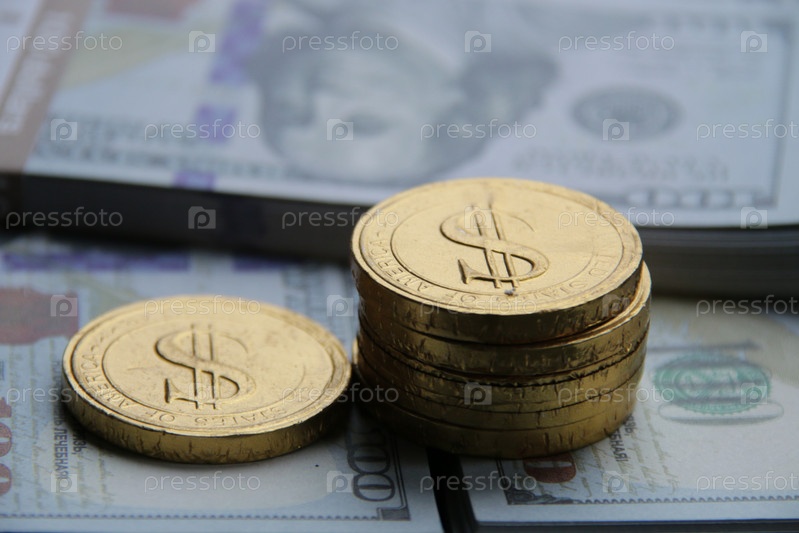 Финансовый фон. Золотые монеты и доллары. Рост доходов