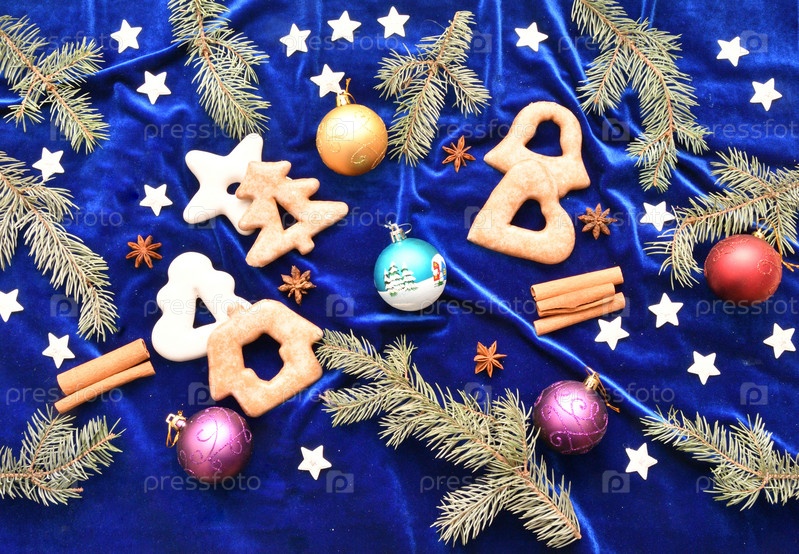 Рождественские пряники, ветки голубой ели