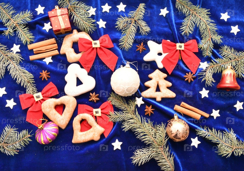 Рождественские пряники, ветки голубой ели